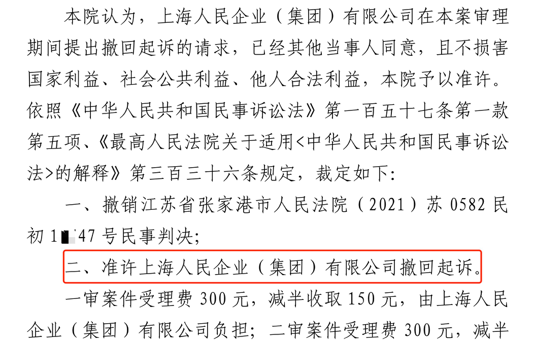 西安胜诉佳讯 | 人民企业系列案苏州六案上海人民公司撤诉