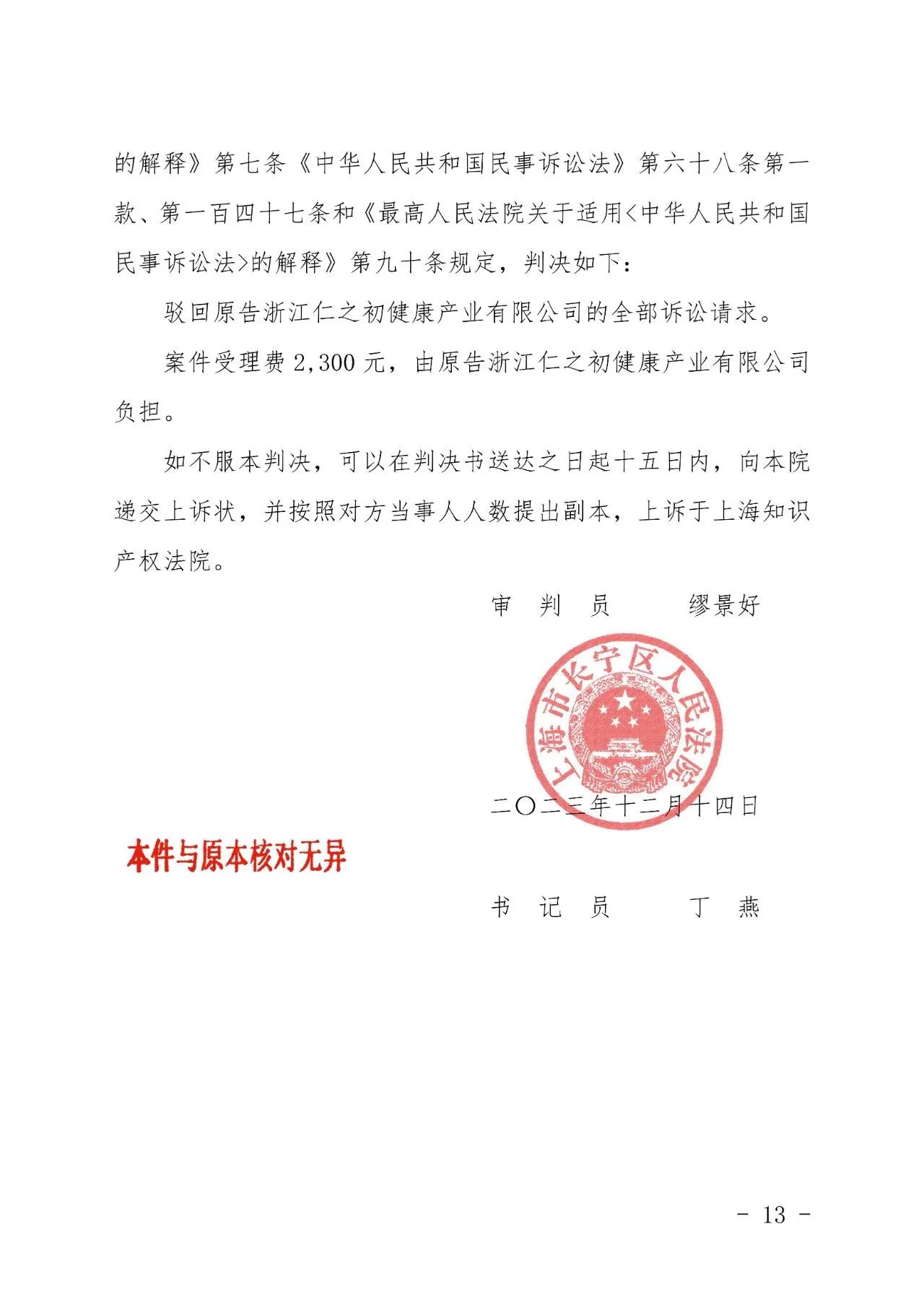 西安辉知胜诉佳讯 | “仁之初健康”著作权及不正当竞争纠纷案,法院:驳回全部诉讼请求!